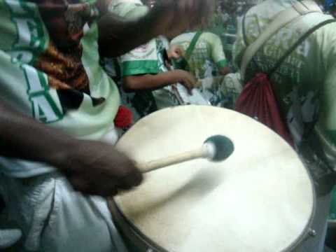 Vídeo de boa qualidade mostrando o surdo de 3ª do Império Serrano durante apresentação na quadra da escola. Com a camera focada no instrumento é possível perceber com clareza as batidas do surdo no samba e as passagens dos diferentes breques!